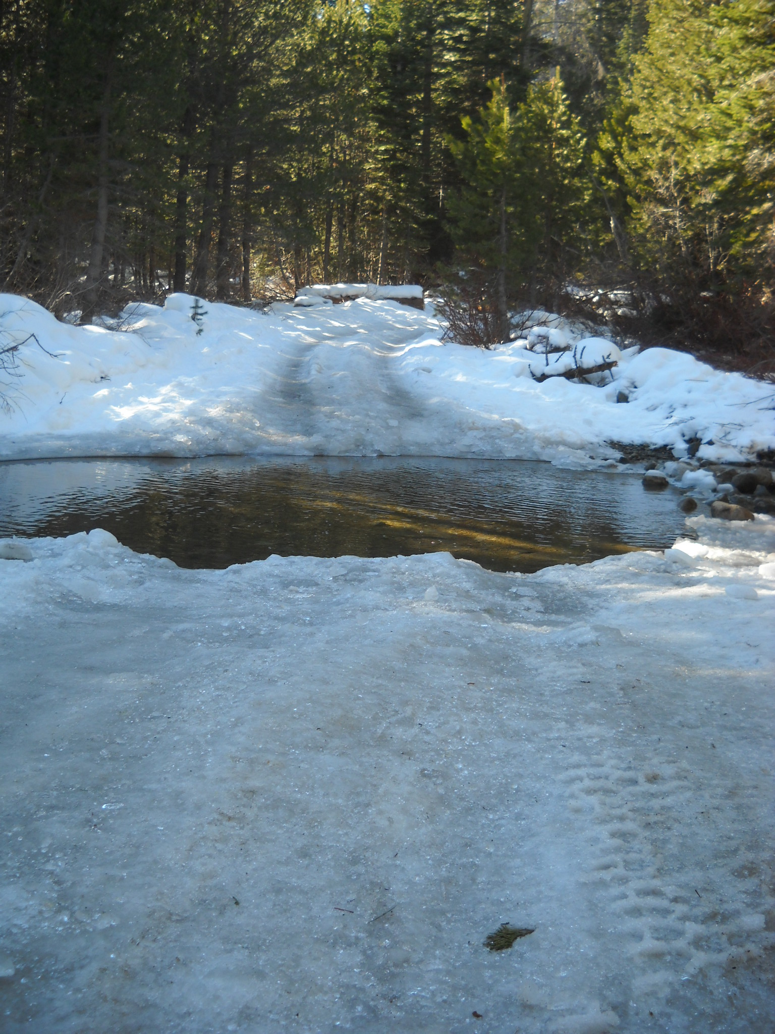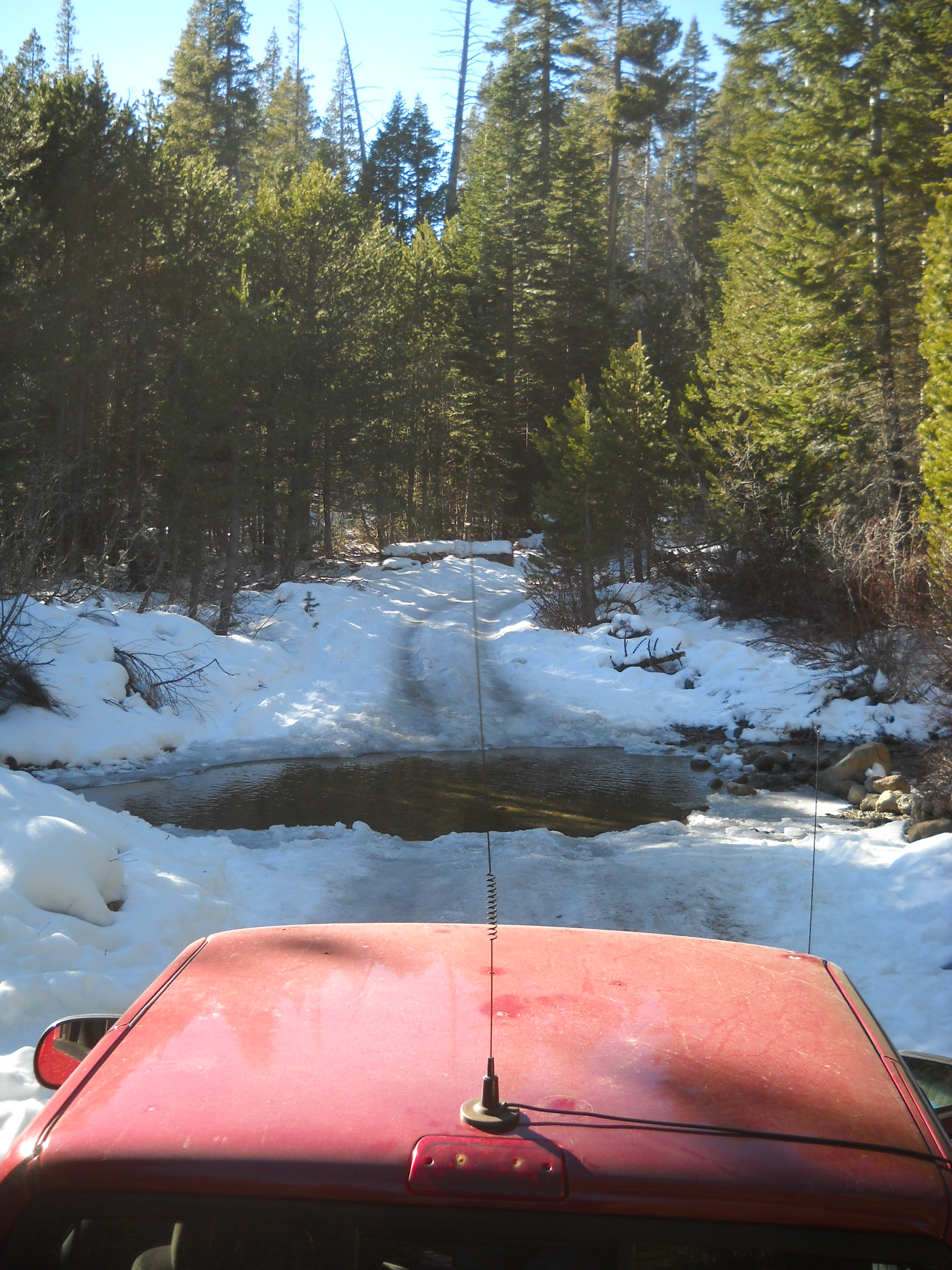Here is my truck at water bar number eight, actually an Arizona crossing. It’s about a 1/8 mile past the intersection with the Buck Lake Trail. The trail was very icy due to the warm day temperatures and below freezing nights.