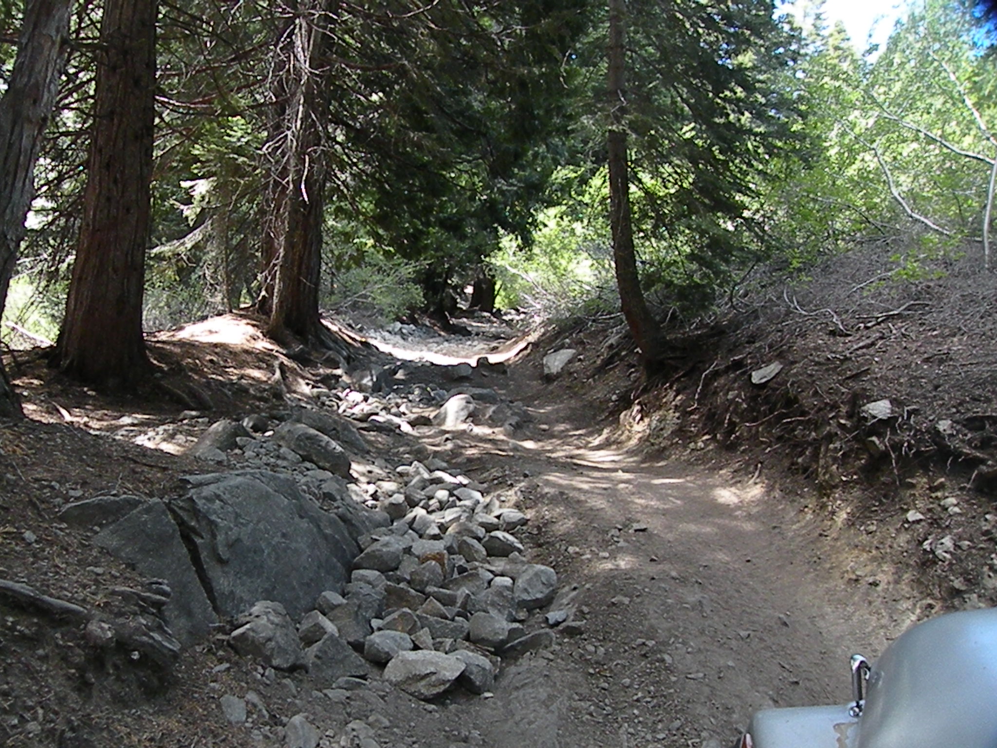 For me, a day on the trail includes trail maintenance. This day was no different. I was out to enhance what I had started 6/4-5. On that day I moved a few trailer loads of rock on Cadillac Hill. So, I moved a few more loads to the same area of the Upper Hairpin and to a spot just a little up the trail. The upper hairpin turn is behind me in the photo below.