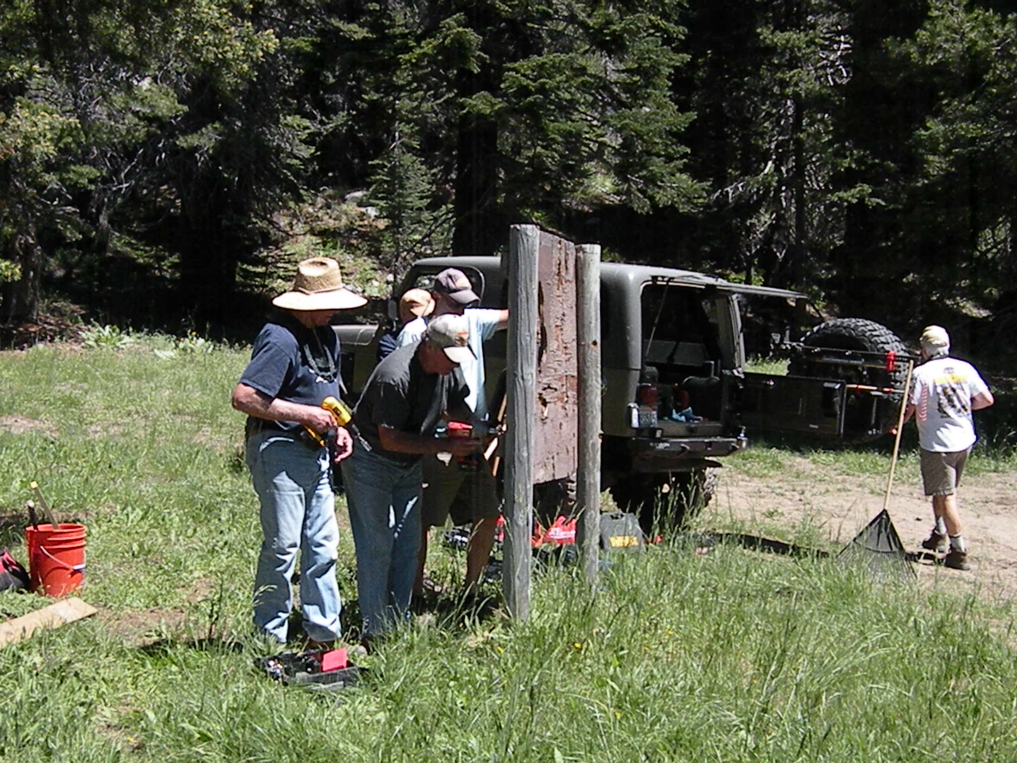 Posted: June 19, 2015 Filed under: Maintenance | Tags: education Leave a commentYesterday I went out with the Tahoe Donner 4 Wheel Drive club and we worked the campsite at Miller Lake and repaired the sign there. There were only five guys from the club but they came to work.