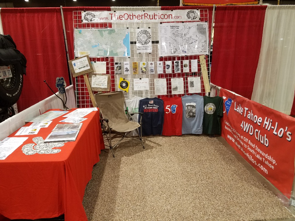 I will again have a booth to promote OHV on and around the Rubicon Trail. The Lake Tahoe Hi-Lo’s will be sharing the booth with me in order to promote their (our) club and our upcoming Gambler’s Poker Run in August.