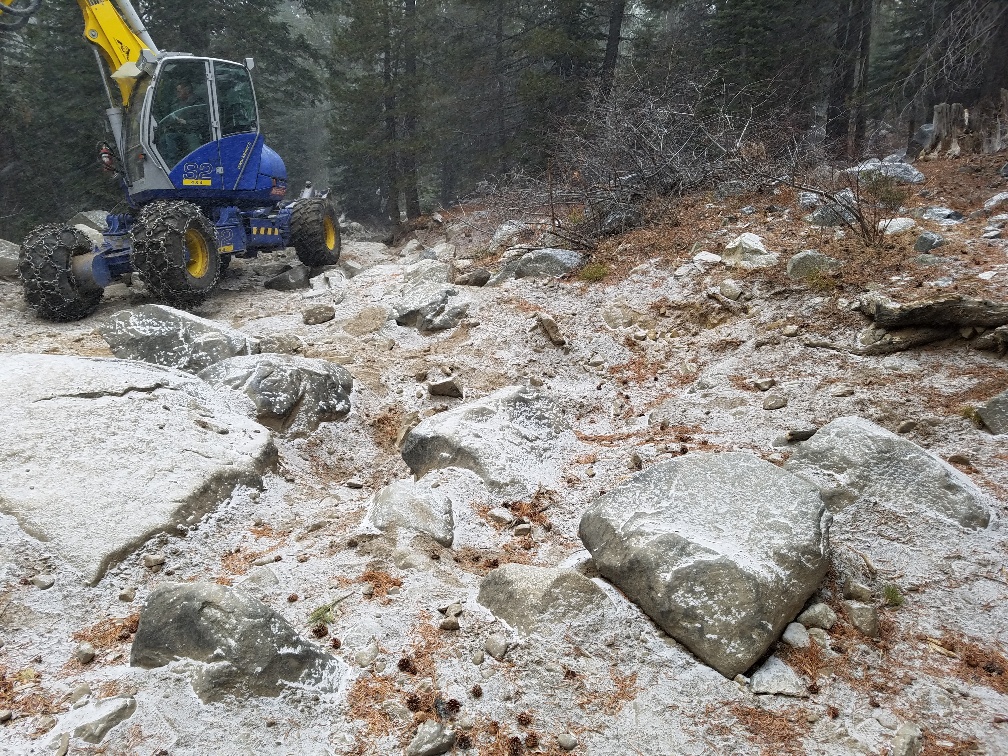 On Monday, just days after this MOU was signed, Joe Chavez, of the Tahoe National Forest, contracted a Spider Excavator to go out to Cadillac Hill to perform trail maintenance.