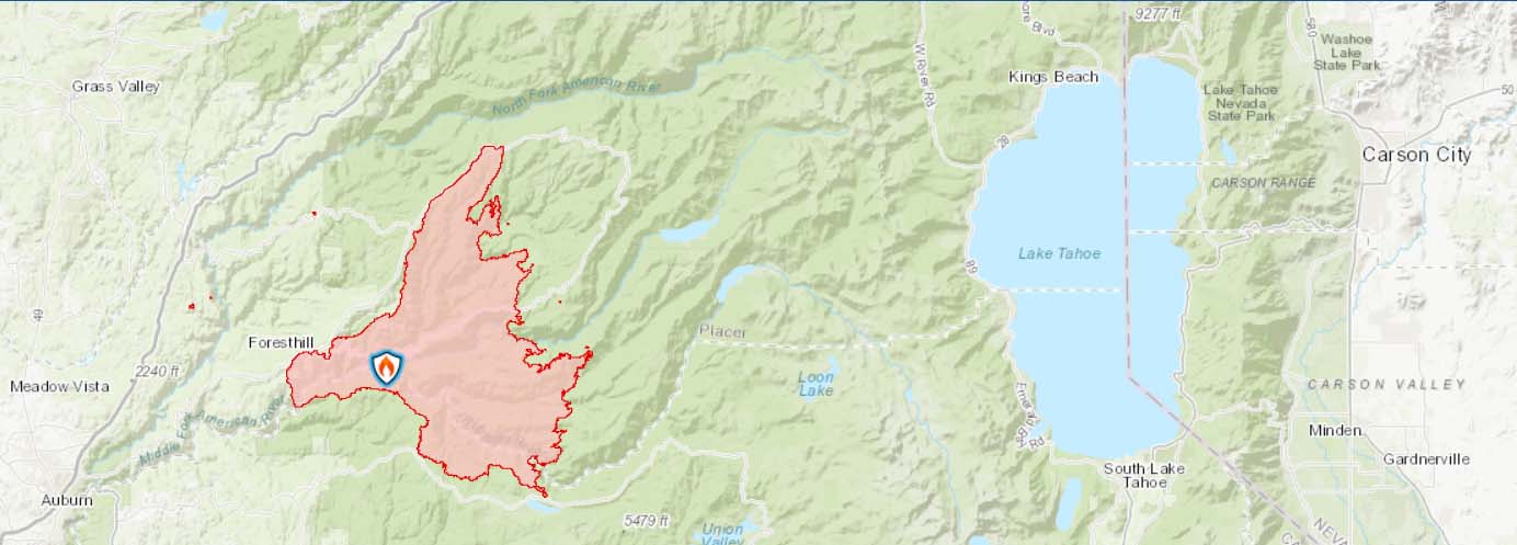 -the fire is 10 miles away from the Loon spillway and almost 20 miles from Rubicon Springs