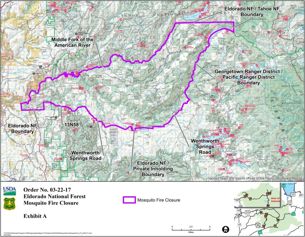 Per the Eldorado National Forest, the current closure has the area ahead of the active fire closed.