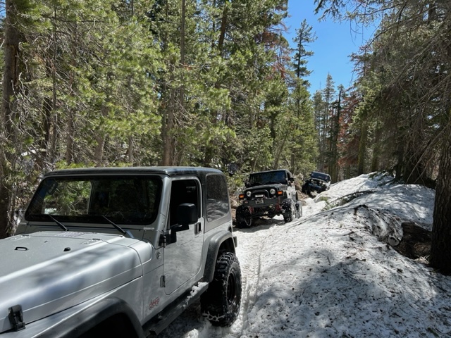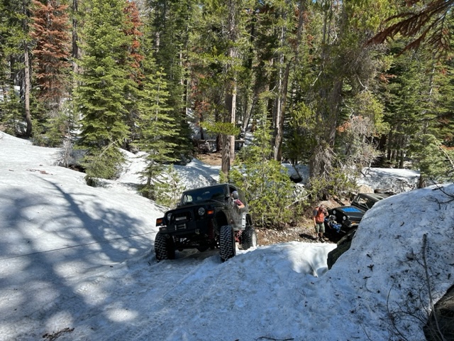 Of course, you want to know how far we got. We started on the snow around 9:30, and turned around about noon, stopped there for lunch and then headed out. Two and a half hours in and half an hour out. On our way out, we came across a bunch of rigs and quads struggling up the very first snow climb. Hint: start as early as possible before the snow starts to melt and gets really slippery.