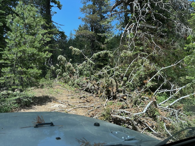 I tried to clear it for all rigs. There were two spots where rigs had driven off trail to go around downed trees. The first one I cleared, the second on I could not clear alone.