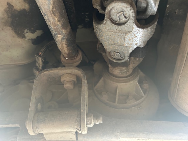 Because I’m running an Nth Degree lift kit, my rear suspension is actually a three link. Yes, a three link. At the front there is one connection to the frame. It’s right in the way of the speedometer sensor.