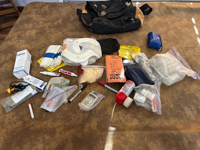 So, here’s my challenge to each of you. Go through your first aid bag and make sure the gloves are not dried out, the tourniquet is right in front, the meds are not expired, etc.