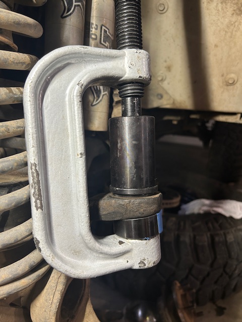 This kit is specifically for Jeep ball joints, or so I was told. It worked great. What you can’t tell from the photo is that the part in the back middle has a slight angle cut to one side. Using that piece and slowly rotating it until your press (clamp) is aligned properly makes all the difference. Amazon!