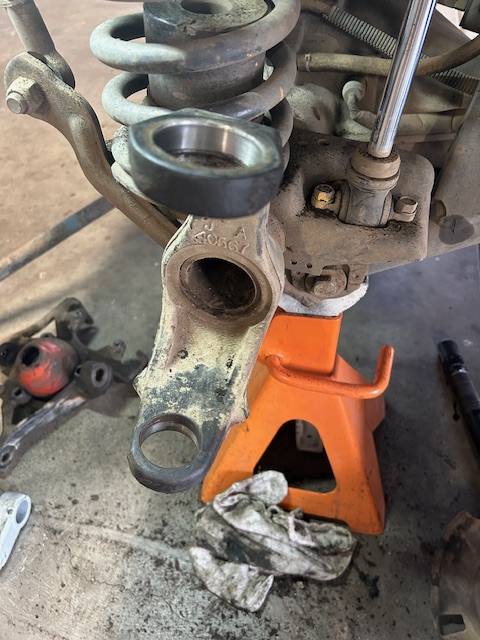 Last month (year), I changed out my left ball joints. Using the old school two-foot Snap-On breaker bar to push the old ones out and the new ones in, I pulled a few muscles in my back. I got the job done and I’m fully recovered now. Working on Jeeps is so much fun.