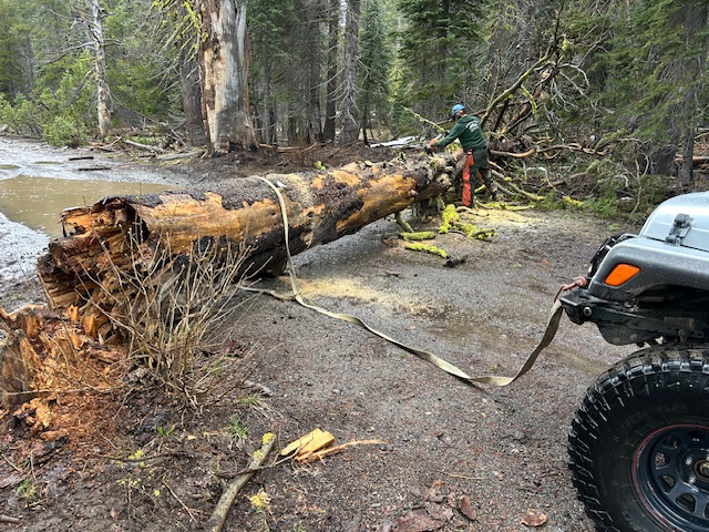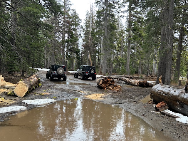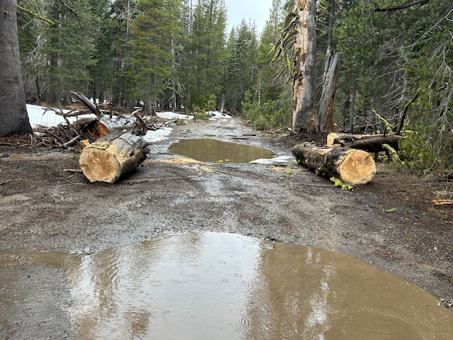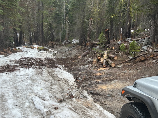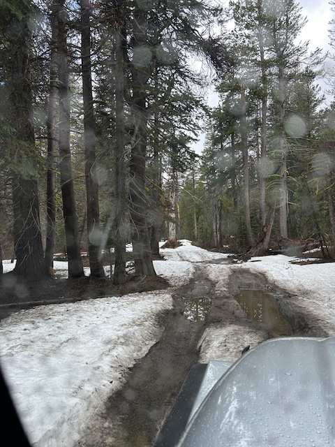 Well, the Forest Service came through about the trees. Myles from the TNF, met us at the staging area this morning and off we went. There was some rain but not too hard. Conditions were wet. So much snow had melted but there were still plenty of snow drifts that were ice on the way in but slushy on the way out.