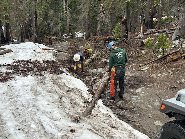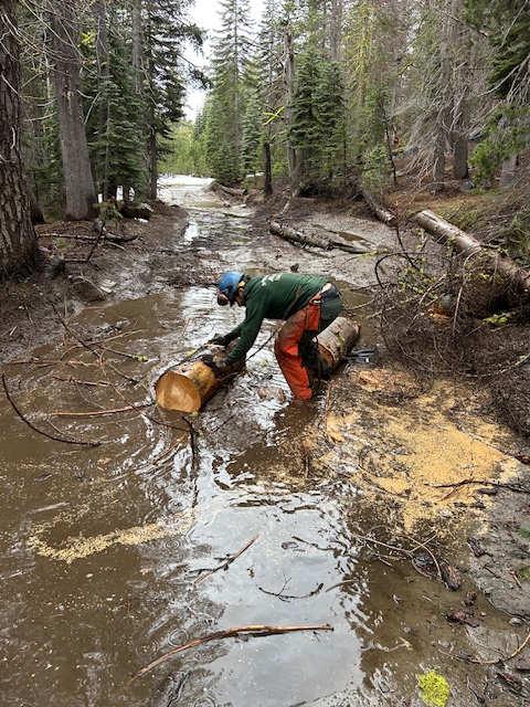 When we got to the staging area, the LTBMU had sent a guy out to clear the tree down in the staging area. Myles jumped in to help him.