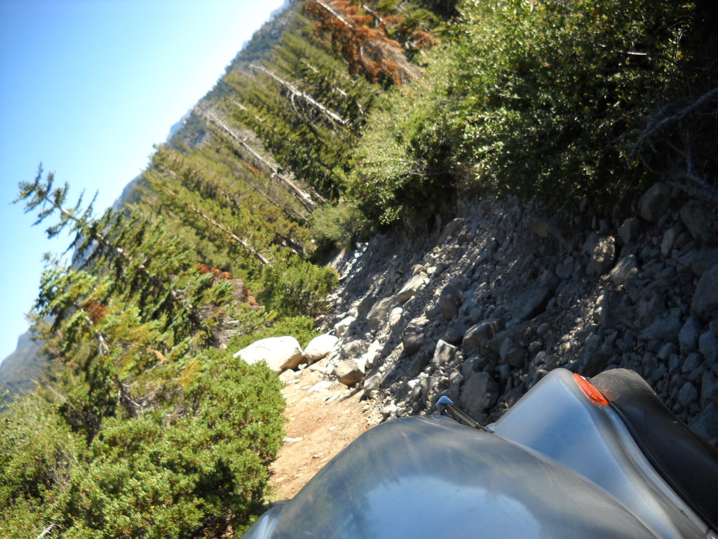 There is an extremely difficult right turn above the turn to Buck Lake. Going uphill is the hard way. There is an anchor point installed above the turn to the right to aid in getting through the turn. Going downhill is much easier but don’t let your rig get away from you. It is possible to flip your rig on or below this obstacle.