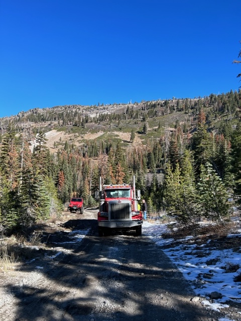 Posted: October 30, 2023 Filed under: Access, Maintenance | Tags: FOTR, maintenance, snow Leave a commentThis morning, I met up with a few fellow FOTR volunteers at the entrance to Blackwood Canyon. The goal was to meet the dump truck full of twelve yards of rock for the upcoming FOTR maintenance effort on November 5th.