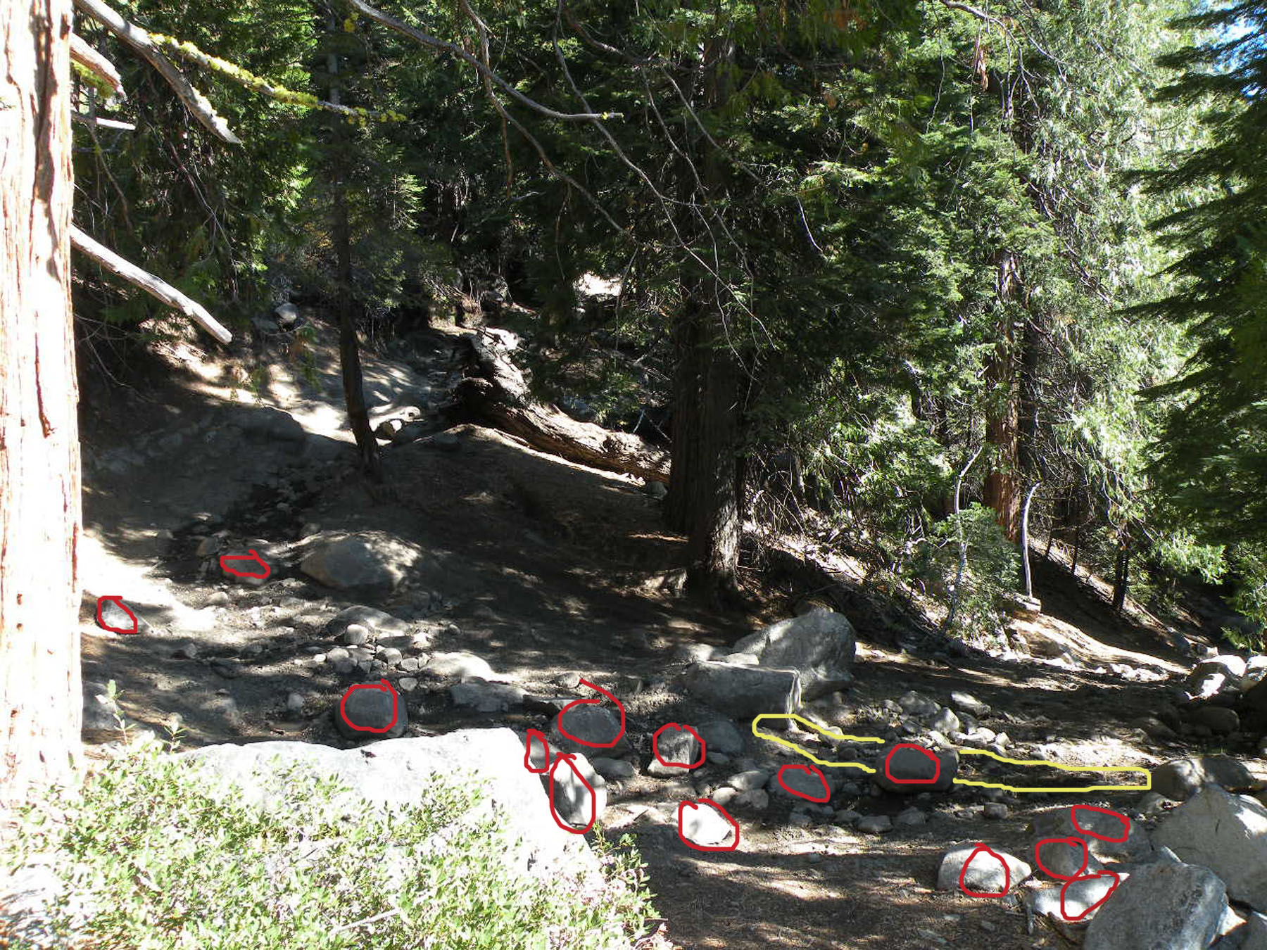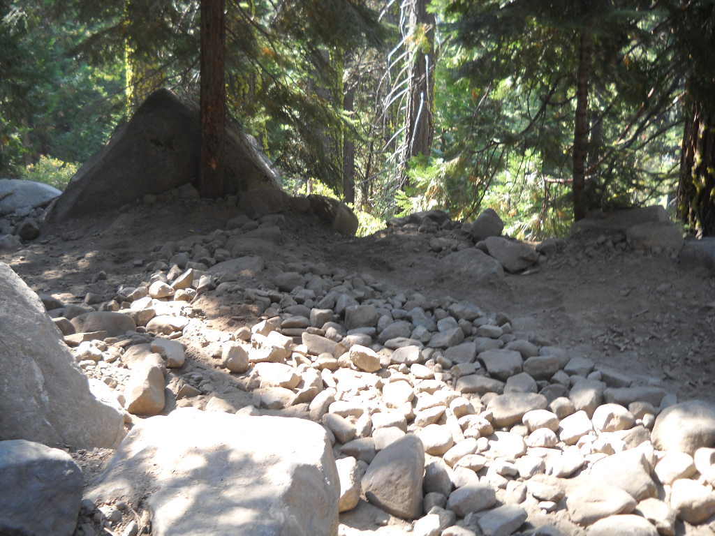 A close up of how the boulders were set into the trail: half buried, half exposed.