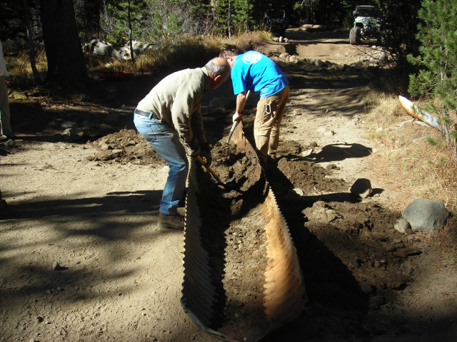 In preparation of the Placer County work coming this summer, John Briggs organized and managed this project to remove a culvert that had washed off the trail and was no longer functional.